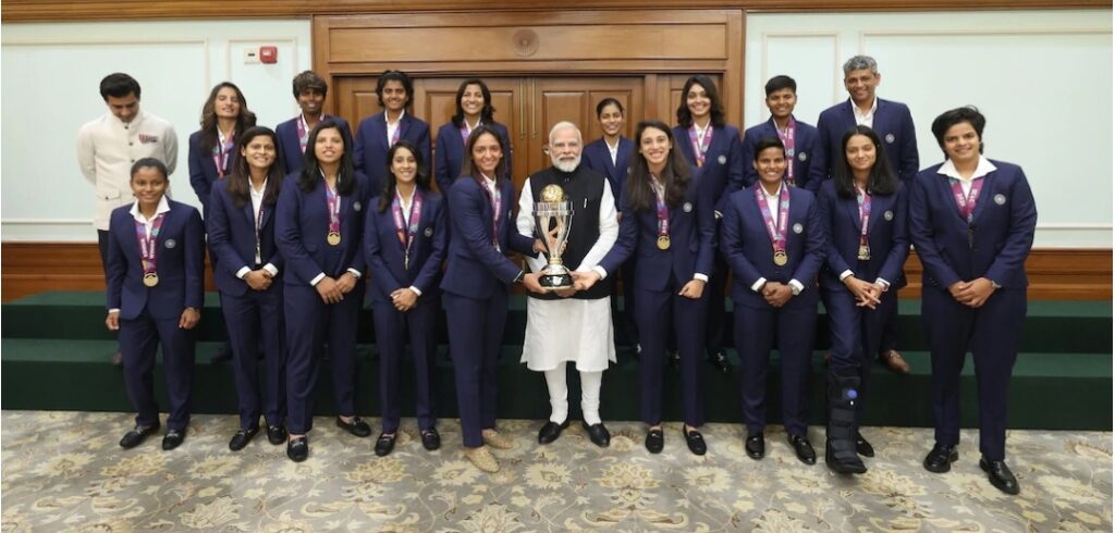 भारतीय महिला क्रिकेट टीम ने रविवार को इतिहास रच दिया। टीम इंडिया ने साउथ अफ्रीका को 52 रनों से हराकर पहली बार महिला वर्ल्ड कप का खिताब अपने नाम किया।टीम की इस शानदार जीत के बाद प्रधानमंत्री नरेंद्र मोदी ने बुधवार को प्रधानमंत्री आवास पर वर्ल्ड चैंपियन बेटियों से मुलाकात की।