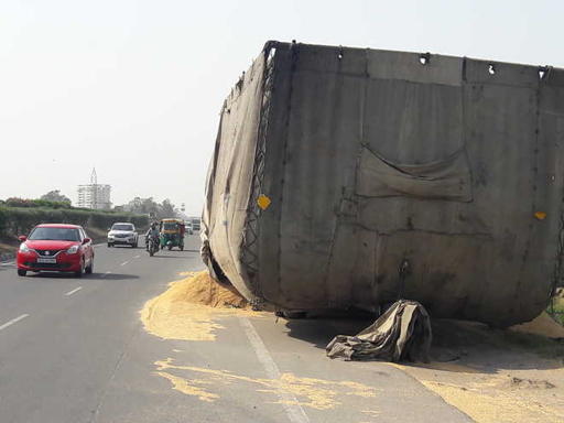 ओवरलोड ट्रैक्टर-ट्रॉलियां सड़कों पर खतरा, शुकरुल्लाहपुर ओवरब्रिज पर हादसा टला।